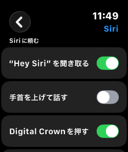 なお、Siriの起動方法の中に「手首を上げて話す」がありますが、反応が安定しないため、あまりおすすめできません。