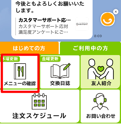 惣菜の中には、一部冷凍に向かないメニューもあります。どのメニューが冷凍に向かないかは、つくりおき.JPのLINEの「メニューの確認」から、いつでもチェックできます。