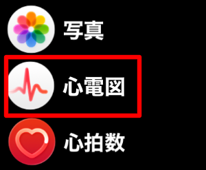 ③デジタルクラウンを押して、「心電図」アプリを起動する