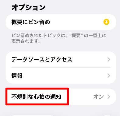 ②「オプション」にある「不規則な心拍の通知」をタップ