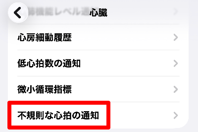 ここでは、「不規則な心拍の通知」が有効になっているかを確認する方法を解説します。