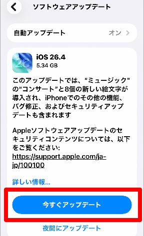 一方、「今すぐアップデート」と表示されている場合は、アップデートが必要です。