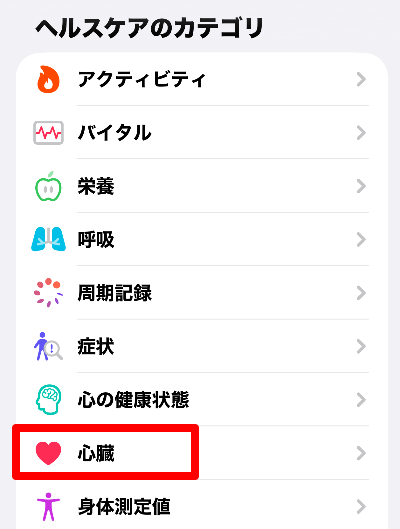 ③「心臓」をタップ