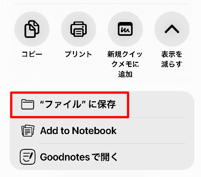 「ファイルに保存」が表示されていない場合は、「表示をふやす」をタップしてください。