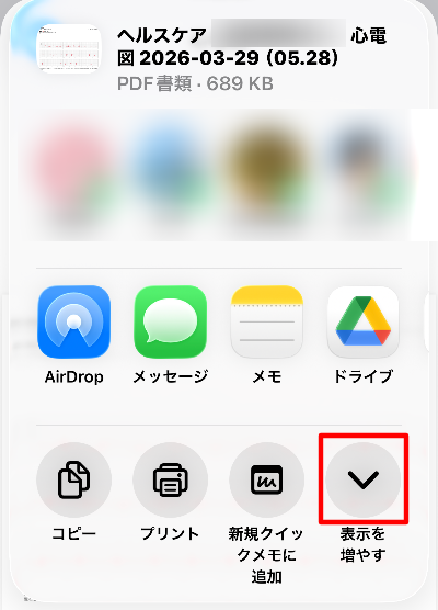 また心電図PDFは、LINEやメールに添付して家族などに送ることもできます。