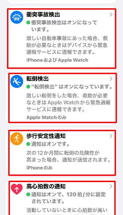 基本的には、ヘルスケア関連の項目はすべて「オン」にしておくことをおすすめします。