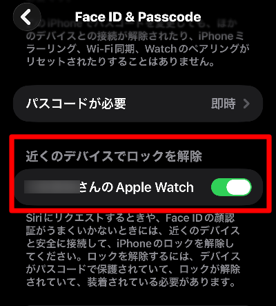 設定が完了すると、iPhoneが顔認証を行う際、Apple Watchを手首に着けていれば自動的にロックが解除されます。